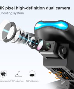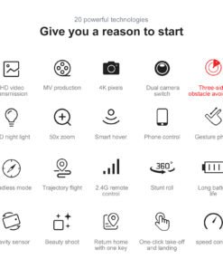 Dual camera switching, fixed height function, foldable aircraft, six pass with gyroscope; one-key take-off, one-key landing, ascent and descend, forward and backward, left and right side fly, steering, headless mode (with camera can be added Functions: Gesture photography, video, headless mode, emergency stop, trajectory flight, gravity sensor, automatic photography)