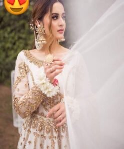 Sleeves embroidery on fabric slightly Sequence work on it with Mirror work & Lace ..